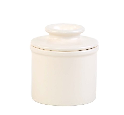 The original Butter Bell crock keeps butter soft, delicious and spreadable for up to 30 days without refrigeration. Through the study of traditional and historical butter storage methods and hours of product development, L. Tremain, Inc. has created a line of butter crocks that are a tribute to the original French butter crock or "beurrier" (pronounced bur-e-ay). Made from durable stoneware or dolomite clays, the Butter Bell crocks will safely keep butter fresh and spreadable without refrigeration, odors or spoilage. The Butter Bell's unique design enhances butter's delicate flavor, while providing a practical and decorative solution for storing and serving butter. It keeps butter at the perfect "spreading" consistency by reflecting outside heat while insulating and cooling the butter. Flavor and freshness is protected by an airtight seal of water at the base of the crock. Water should be changed out every three days and replaced with fresh, cold water. Store the crock away from heat or sunlight. To use, firmly pack softened butter into the bell-shaped lid, pour cold water into the base of the crock and place the lid upside down back into the base of the crock. The matte ivory Butter Bell crock works equally well in a modern kitchen environment as well as sophisticated dinner settings. This versatile color works well with marble or granite counter tops or stainless steel appliances or any style of dinnerware. Dishwasher safe.